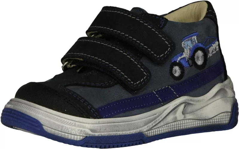 Az oldalán elhelyezett traktor motívum játékos, fiús megjelenést kölcsönöz a lábbelinek, miközben a klasszikus színvilág könnyen kombinálható a mindennapi ruházattal. A kényelmes belső kialakítás és a megfelelő tartás támogatja a természetes járást, így ideális választás óvodába, sétákhoz vagy szabadtéri játékhoz.